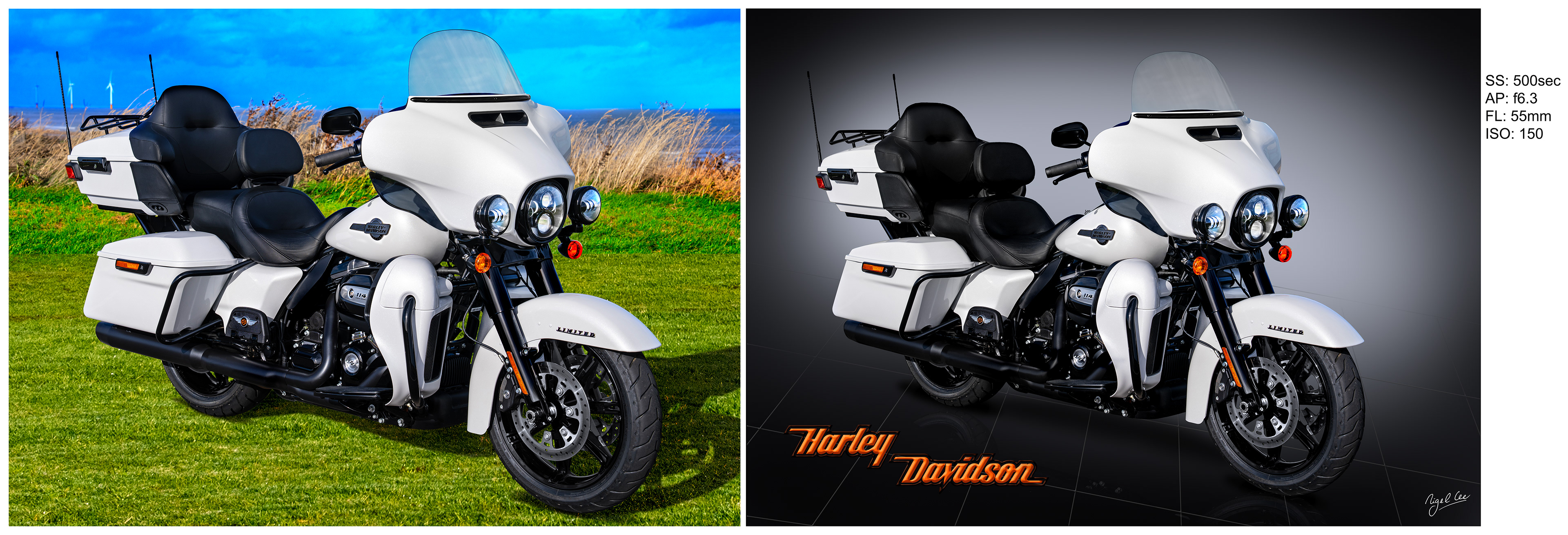 Harley-Davidson Fat Boy. This was courtesy bike on loan from Harley. Photographed on my driveway at home with a lovely sunset added.